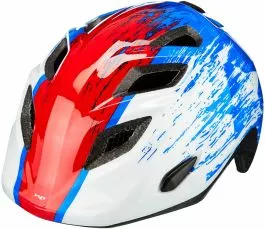 Met Elfo cykelhjelm. Hjelmen har bespænding i nakken og justerbar remme der gør hjelmen nem at tilpasse barnet.