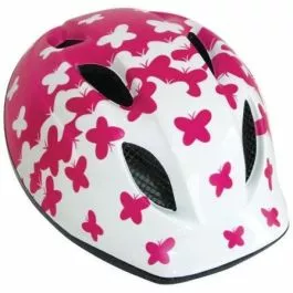 Met cykelhjelm boddy Hvid/pink med sommerfugle. Hjelmen har bespænding i nakken og justerbar remme der gør hjelmen nem at tilpasse barnet.